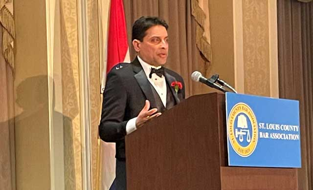 On Feb. 4, Bharat Varadachari was sworn in as President of the St. Louis County Bar Association. The ceremony was held in the Crystal Ballroom of the Clayton Plaza Hotel.